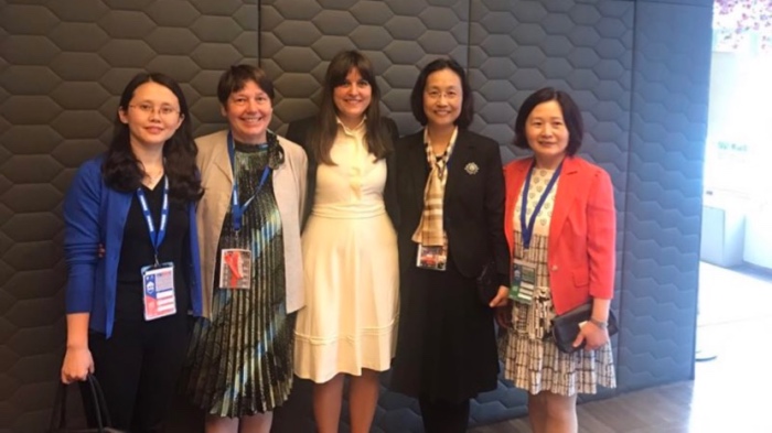代表團(tuán)與WiN、大會(huì)阿根廷聯(lián)合主席合影(攝影:張昊)